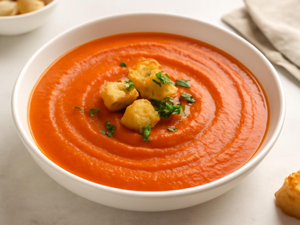 Нежный томатный суп с фасолью — пример того, как простые ингредиенты могут дать насыщенный вкус и сытную текстуру. Запечённые овощи, сливки и белая фасоль создают сбалансированное блюдо, которое подойдёт и для обеда, и для лёгкого ужина. Такой суп хорошо сочетается с хлебом с хрустящей коркой или свежим салатом, особенно если вы цените блюда с бархатной консистенцией, как у супа с шелковистой текстурой. Об этом сообщает Allrecipes. Почему томатный суп с фасолью получается таким кремовым Ключевую роль в рецепте играют фасоль каннеллини и сливки. Фасоль при измельчении даёт естественную кремовую плотность без необходимости использовать муку или крахмал. Запекание помидоров и болгарского перца усиливает их сладость и убирает лишнюю кислотность, делая вкус более округлым и глубоким. Оливковое масло и смесь трав Cantanzaro дополняют овощи средиземноморскими нотами.